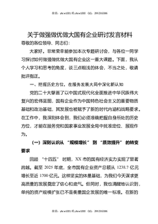 关于做强做优做大国有企业研讨发言材料.docx