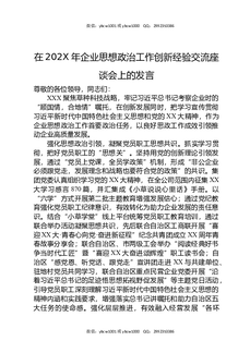 在202X年企业思想政治工作创新经验交流座谈会上的发言.docx