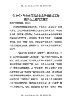 在202X年全市民营企业家队伍建设工作座谈会上的交流发言.docx