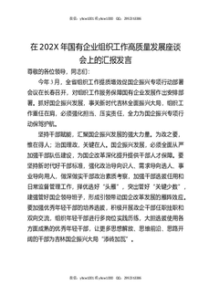 在202X年国有企业组织工作高质量发展座谈会上的汇报发言.docx