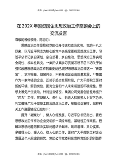 在202X年国资国企思想政治工作座谈会上的交流发言.docx