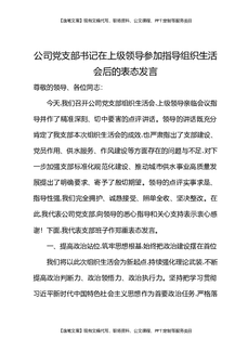 公司党支部书记在上级领导参加指导组织生活会后的表态发言.docx