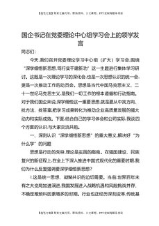 国企书记在党委理论中心组学习会上的领学发言.docx