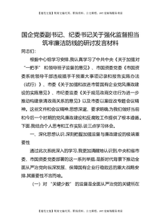 国企党委副书记、纪委书记关于强化监督担当筑牢廉洁防线的研讨发言材料.docx