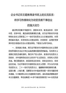 企业书记在主题教育读书班上的交流发言:将学习热情转化为攻坚克难干事创业的强大动力.docx