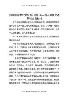 园区服务中心党组书记学习选人用人重要论述研讨发言材料.docx