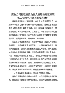 煤业公司党政主要负责人主题教育读书班第二专题学习会上的发言材料.docx