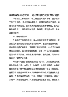 两会精神研讨发言:财政金融协同发力促消费.docx