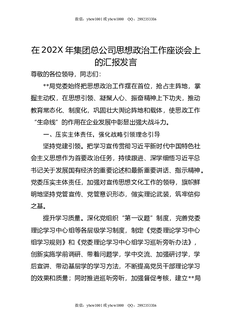 在202X年集团总公司思想政治工作座谈会上的汇报发言.docx
