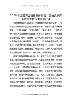 2026年全国两会精神研讨发言:加快文旅产业成为支柱民生幸福产业.docx