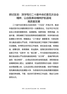 研讨发言:深学笃行二十届中央纪委五次全会精神,以自我革命精神护航县域高质量发展.docx