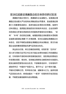 坚决扛起建设清廉国企的主体责任研讨发言.docx