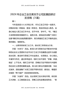 202X年企业工会主席关于公司发展的研讨发言稿(3篇).docx