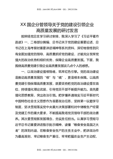 XX国企分管领导关于党的建设引领企业高质量发展的研讨发言.docx