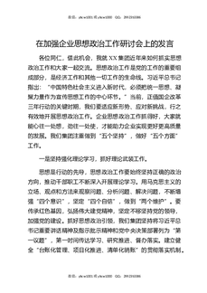 在加强企业思想政治工作研讨会上的发言.docx