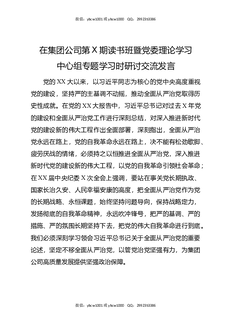 在集团公司第X期读书班暨党委理论学习中心组专题学习时研讨交流发言.docx