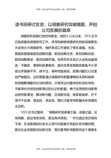 读书班研讨发言:以调查研究攻破难题,开创公司发展新篇章.docx