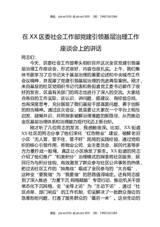 在XX区委社会工作部党建引领基层治理工作座谈会上的讲话.docx