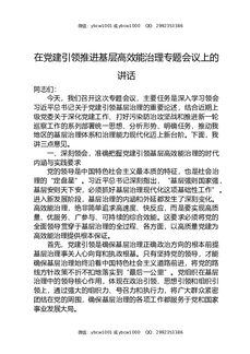 在党建引领推进基层高效能治理专题会议上的讲话.docx