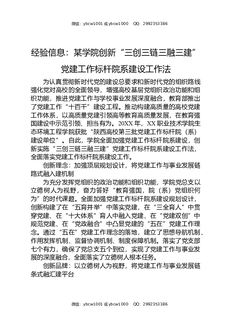 经验信息:某学院创新“三创三链三融三建”党建工作标杆院系建设工作法.docx
