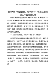 集团党委“党建赋能、业务融合”党建品牌创建工作的情况汇报.docx