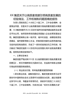 XX集团关于以高质量党建引领高质量发展的经验做法、工作机制和问题困难的报告.docx