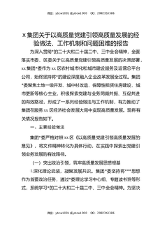 X集团关于以高质量党建引领高质量发展的经验做法、工作机制和问题困难的报告.docx