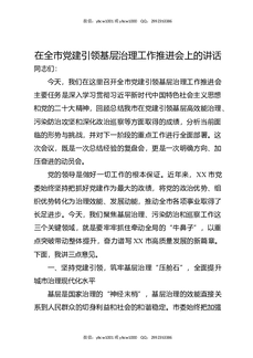 在全市党建引领基层治理工作推进会上的讲话.docx