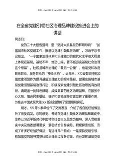 在全省党建引领社区治理品牌建设推进会上的讲话.docx