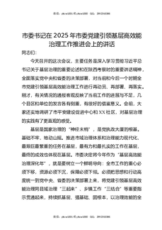 市委书记在2025年市委党建引领基层高效能治理工作推进会上的讲话.docx