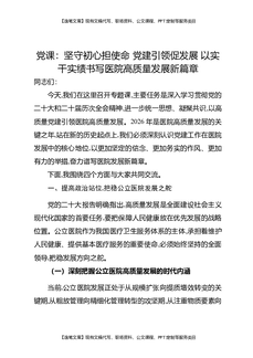 党课:坚守初心担使命,党建引领促发展,以实干实绩书写医院高质量发展新篇章.docx