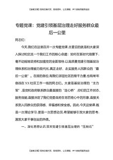 党课讲稿:党建引领基层治理,走好服务群众最后一公里.docx