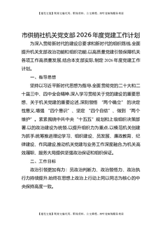 XX市供销社机关党支部2026年度党建工作计划.docx