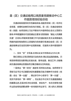县(区)交通运输局以高质量党建推动中心工作提质增效经验总结.docx