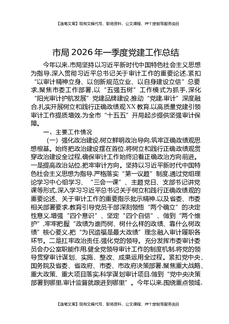 市审计局2026年第一季度党建工作总结及第二季度工作计划.docx