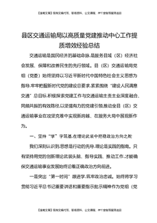 县区交通运输局以高质量党建推动中心工作提质增效经验总结.docx