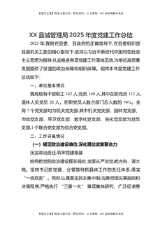 XX县城管理局2025年度党建工作总结.docx