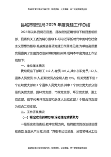 县城市管理局2025年度党建工作总结.docx