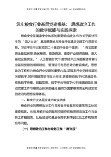 筑牢粮食行业基层党建根基:思想政治工作的数字赋能与实践探索.docx