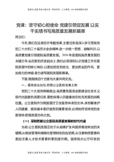 党课:坚守初心担使命,党建引领促发展,以实干实绩书写医院高质量发展新篇章.docx