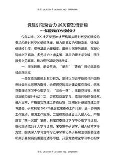 基层党建工作经验做法:党建引领聚合力踔厉奋发谱新篇.docx