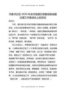 市委书记在2025年全市党建引领基层高效能治理工作推进会上的讲话.docx