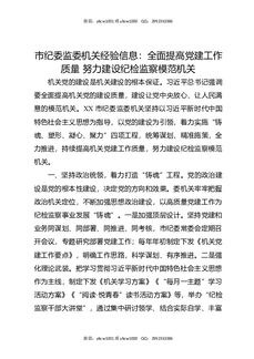市纪委监委机关经验信息:全面提高党建工作质量努力建设纪检监察模范机关.docx