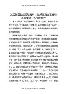 某区基层党建经验材料:做好三篇文章推动基层党建工作提质增效.docx