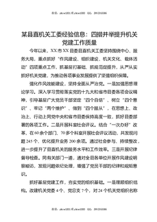 某县直机关工委经验信息:四措并举提升机关党建工作质量.docx