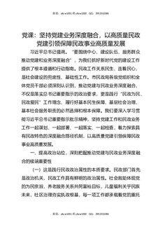 党课:坚持党建业务深度融合,以高质量民政党建引领保障民政事业高质量发展.docx