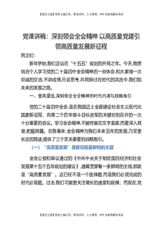 党课讲稿:深刻领会全会精神以高质量党建引领高质量发展新征程.docx