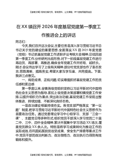 在XX镇召开2026年度基层党建第一季度工作推进会上的讲话.docx