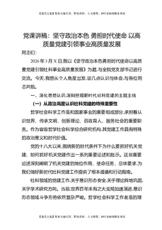 党课讲稿:坚守政治本色勇担时代使命以高质量党建引领事业高质量发展.docx