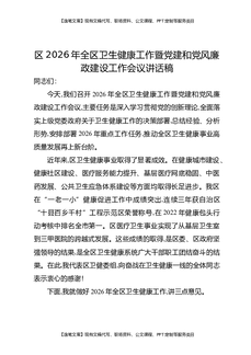 区2026年全区卫生健康工作暨党建和党风廉政建设工作会议讲话稿.docx